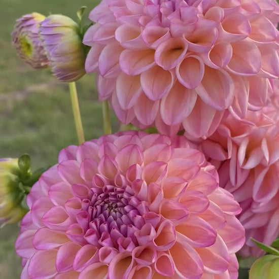 Pink and lemon tones are a striking feature of this pretty little dahlia. She has great stems for cutting to and flowers prolifically throughout the season.