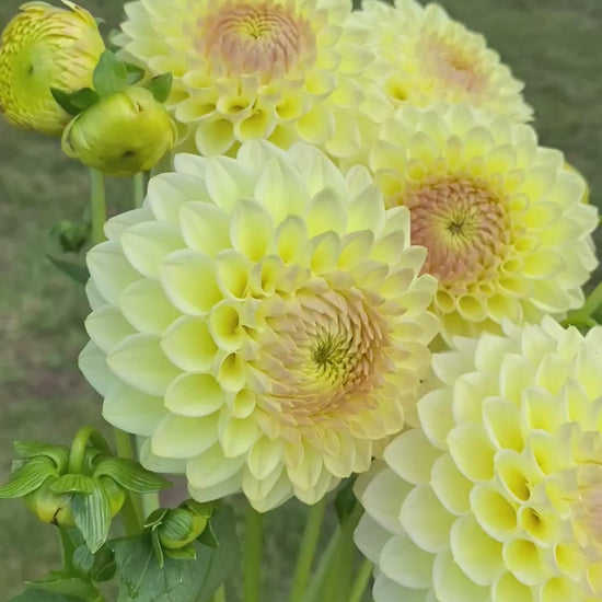 This stunning and sort after small decorative dahlia with a deep lemon hue and blush centre. Great form for cutting.